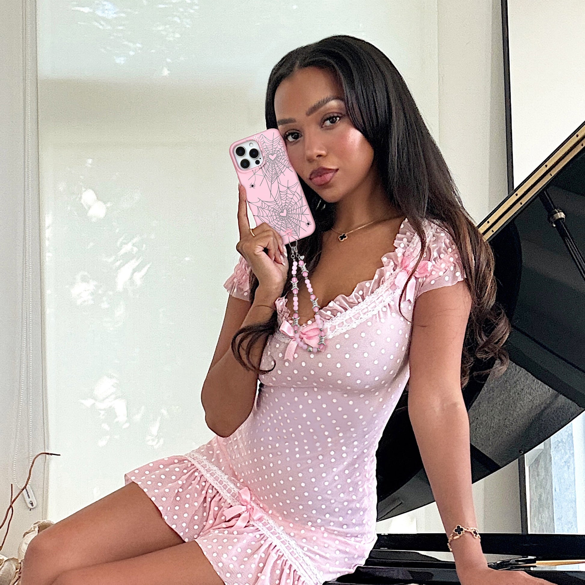 Pink Barbed Wire Phone Charm