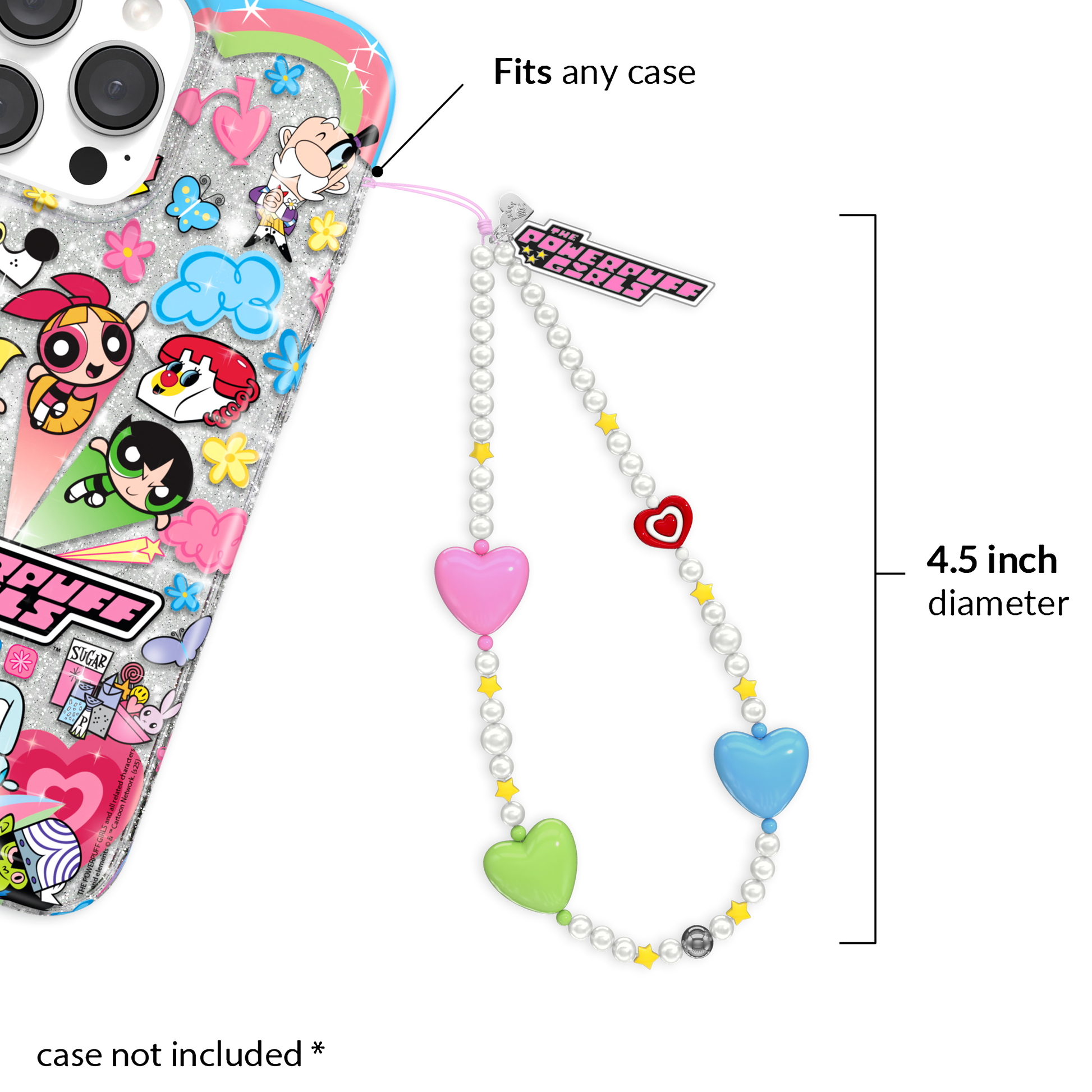 In collaboration with The Powerpuff Girls™ Easily attaches to your case to provide an extra loop of security and a major dose of cuteness!